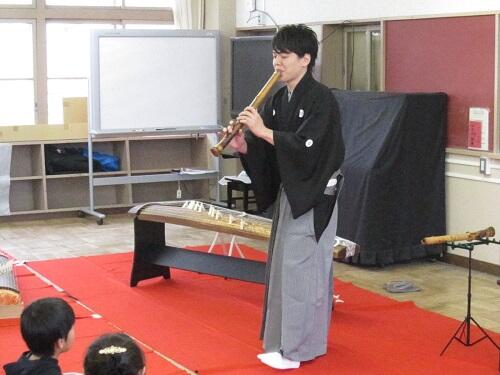1月17日(水)の3・4校時に、5年生が箏と尺八の演奏家による、邦楽の音楽鑑賞教室を行いました。お正月には、必ずどこでも聴かれる「春の海」の演奏に始まり、箏の演奏体験もありと、とても充実したプログラムでした。
