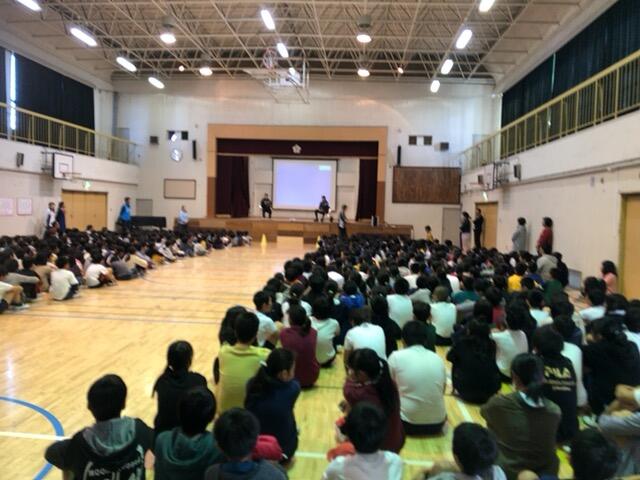 子どもたちは、正中岳城選手の話を最初から最後まで目を輝かせながら話を聞いていました。その後の質問タイムでは、百人近くの子供が手を挙げ、大変盛り上がりました。