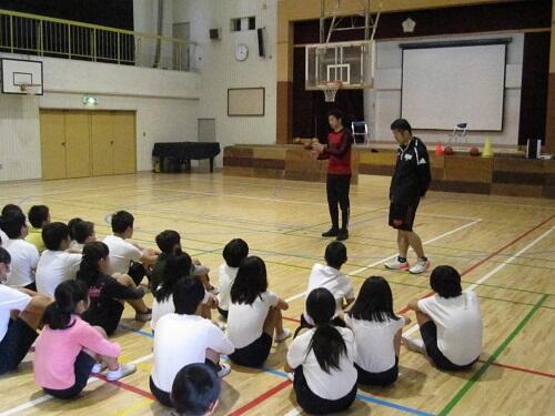 また、4時間目は、6年生が交流しました。小学生のうちから、一流選手を近くで見たり、話を聞いたりする本物の体験は、かけがえのないものです。