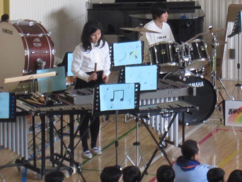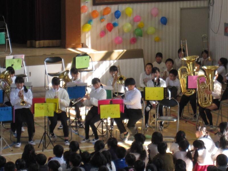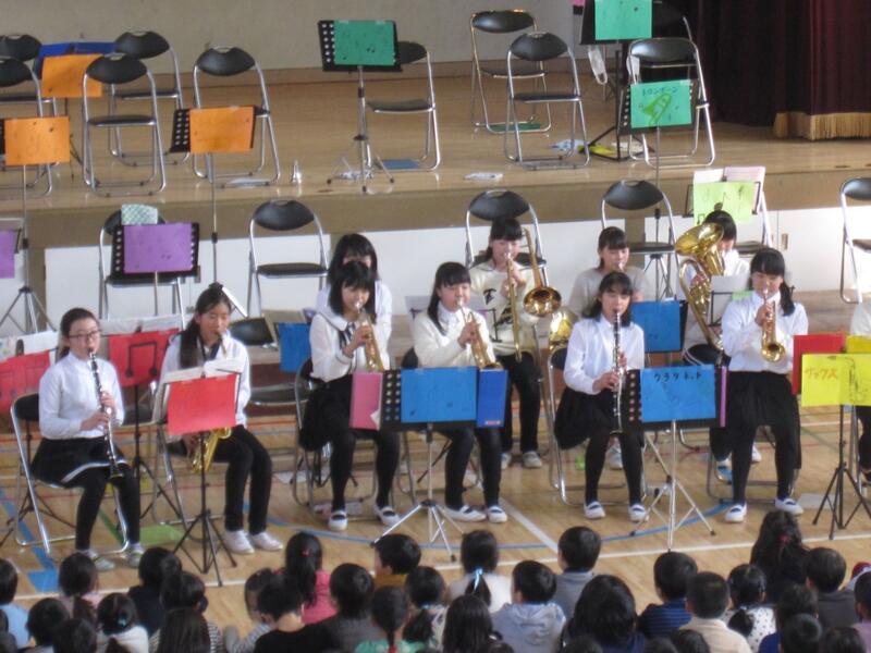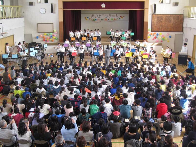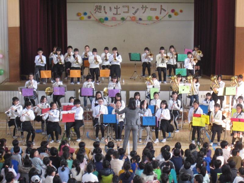 2月20日(水)に体育館で、「想い出コンサート」が行われました。課外活動ですが、1年間のまとめとしての機会を設定しています。当初は、2月9日(土)学校公開日に予定されていましたが、インフルエンザによる学級閉鎖等もあり、全員そろっての練習もままならず延期となっていました。結果的には少し寒さも和らぎ、演奏を聴きたい児童と保護者で体育館がいっぱいとなる中、練習の成果を披露してくれました。