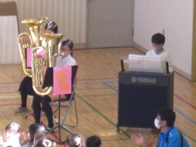 6年生の児童からは、吹奏楽の思い出コンサートの告知や代表委員会の企画した案の呼びかけの話がありました。