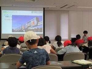 次に行ったのは、多摩モノレール本社です。多摩モノレールの歴史やモノレールの秘密を聞いたり、車両基地も見せていただいたりしました。