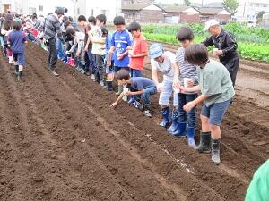 24日(木)、5年生が麦蒔きに行きました。
