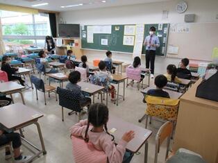 1年生は名札の付け方や、座り方や立ち方、帰りの支度など教室での過ごし方も少しずつ学びました。