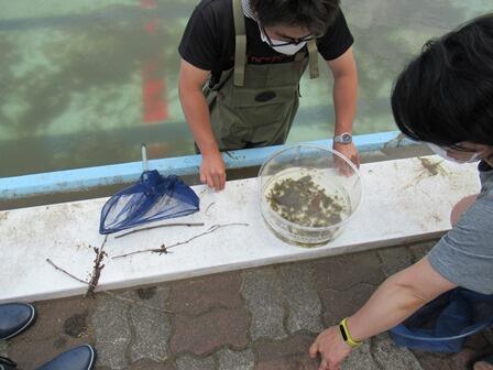 清掃の前にいつもならば3年生児童にヤゴをとってもらっていたのですが、