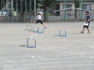 高学年の体育は、ハードル走を行っています。