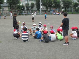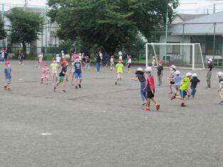 校庭ではだるまさんがころんだや、ドッジボール、しっぽとりなどをして遊んでいました。
