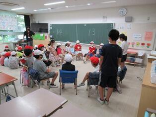 教室でも輪になっていそいそなゲームをしていました。