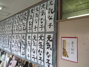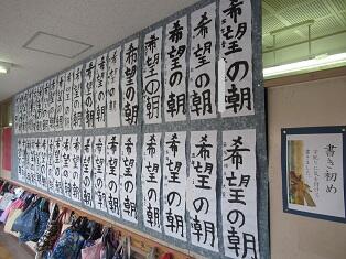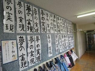 今年の書初め作品を、各教室の廊下に掲示し、校内書写展を開始しました。
