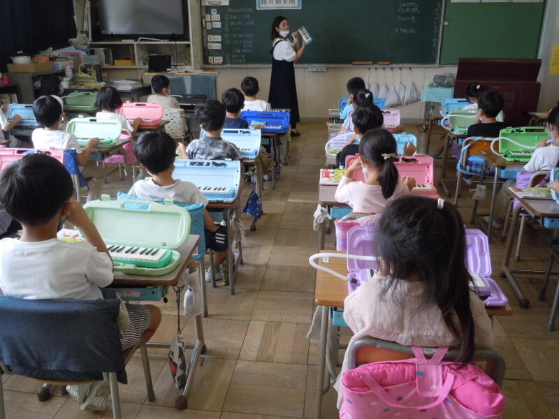 1年生の鍵盤ハーモニカの学習では指使いに気を付けて、ドとソを弾けるように頑張っていました。