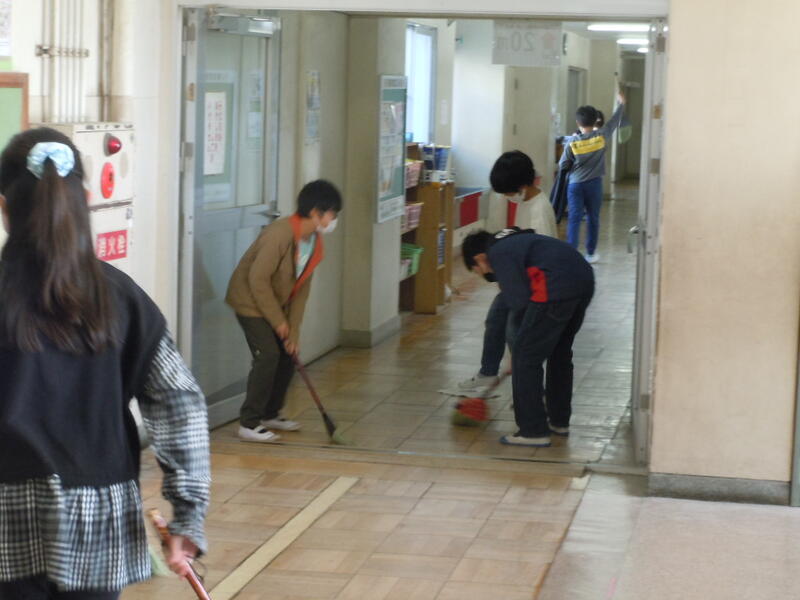 本日午後より来年度の新1年生の健康診断が行われるにあたり、はじめて本校に来校する保護者の方々や新1年生に、少しでもよい印象をもってもらいたいとの思いから5年生が廊下の掃除を一生懸命行いました。