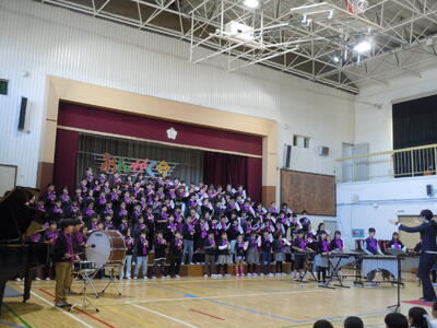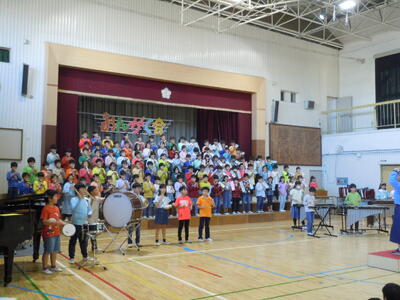 児童鑑賞日が本日行われました。一同に体育館に集まり会を行うことができず、2部制での音楽会を行いました。1年生から6年生までのそれぞれの学年が精一杯合唱・合奏を行いました。