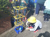 今週、1年生が「あさがおのリースづくり」に取り組んでいます。
