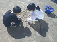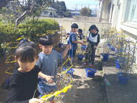 1学期に種をまき、育てたあさがおのつるを、鉢から丁寧に取っていきました。