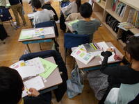 切って、貼って、色塗りをして、、それぞれに工夫しながらカードを作っています。