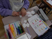 外国語活動の「This is for you」の学習で、グリーティングカードを作っています。