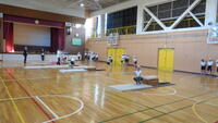 体育で、跳び箱の台上前転を練習しました。(3年生)