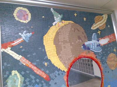 子どもたちの豊かな発想の作品が並んでいます**