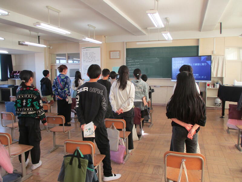 音楽の授業では、卒業式に向け「大切なもの」と「翼をください」のリコーダーを練習しています。
