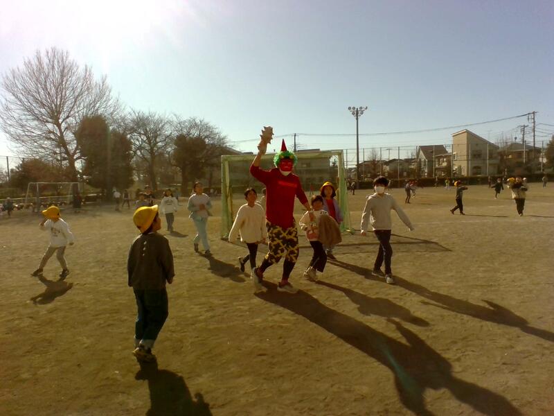 ★☆節分☆★ 投稿日時 : 02/03 HP担当 今日は節分ですね。 なんと!! 幸小にも鬼が来ました〜!! 中休み、校庭で鬼と鬼ごっこをする子どもたち・・・ 子どもたちと遊んでくれる、大人気の優しい鬼さんでした♪