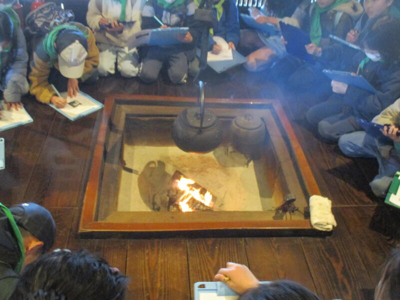 茅葺屋根の小林家住宅や土造りの蔵を目前に、「ホームページで見たより大きい」と感じたようです。当時の住宅の様子や道具を実際に目にし、たくさん質問をしていました。公共のマナーについても改めて振り返ることができ、実りのある3年生最後の校外学習となりました。