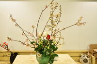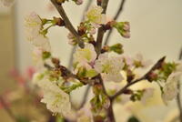 修了式まであと6日の登校日になりました。玄関では、一足はやく桜の花が可憐な花を咲かせ、出迎えてくれています。