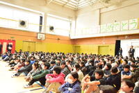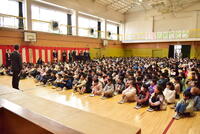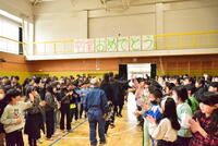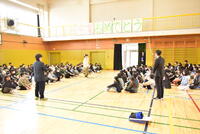 その後、5年生が体育館の卒業式会場を作りました。6年生から「よろしくお願いします」のあいさつを受け、5年生は、少々戸惑いつつ「頑張ります」と答えていました。