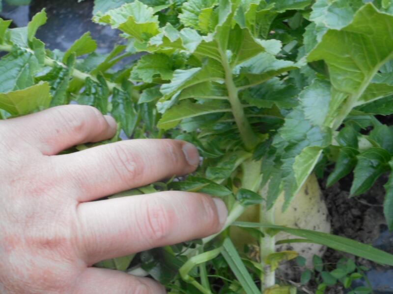 もうすぐ収穫! 投稿日時 : 2014/12/17 副校長 カテゴリ:三年生 3年生・4年生は、2学期に学校農園で大根を育てました。地域の農家荒井英夫さんとお仲間の方に、土作りからいろいろとお世話やご指導をしていただきました。ありがとうございました。おかげさまで、もう立派な大根ができつつあります。もうすぐ収穫です。楽しみですね。