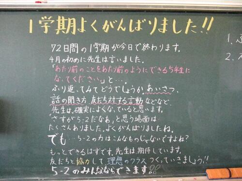 黒板に先生からのコメントが書かれているクラスも