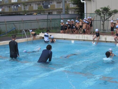 本日、夏季水泳指導が最終日でした。夏真っ盛りのとても暑い中、子どもたちは気持ちよさそうに泳いでいました。また、最後の検定もありました。