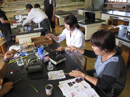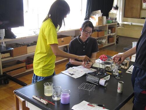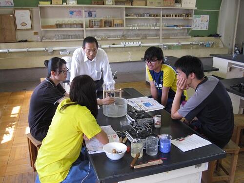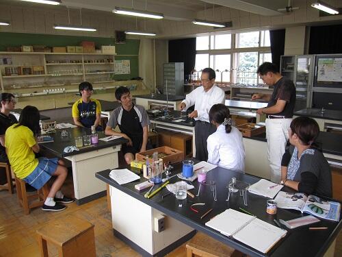 これは、3年~6年まで、学年ごと4回に分けて行われた〈理科研修〉の様子です。日頃より、理科の学習支援に来てくださっている、内野 淹良先生にご指導いただきました。