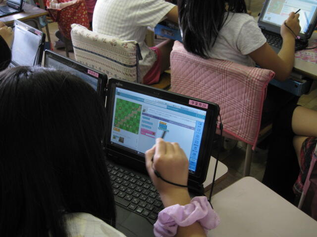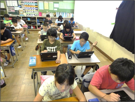 子供用のタブレットPCも40台ほど導入されました。この学級では、1人1台タブレットPCを渡して、タブレットPCの起動、シャットダウンの仕方、簡単な操作の仕方などを学びました。どの子も熱心に、楽しくタブレットPCを使っていました。