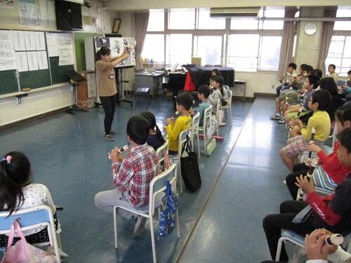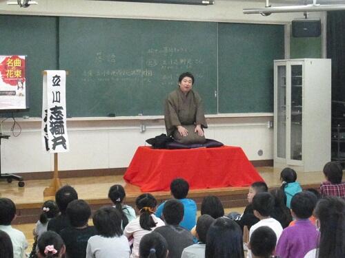 音楽室での授業 4年:落語家さんによる「落語出前授業」