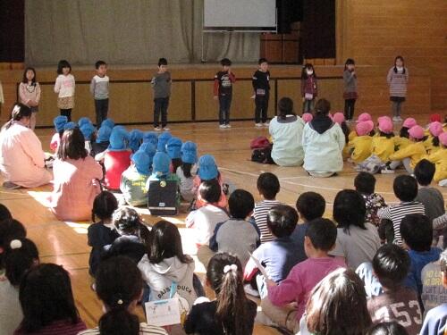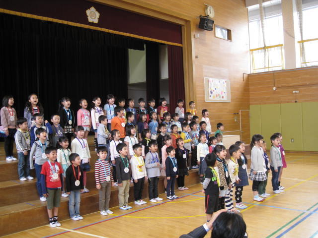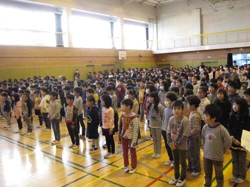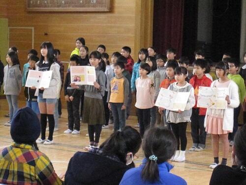 各クラスの代表児童に修了証の授与を行い、一年間の成長をふりかえりました。