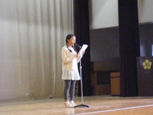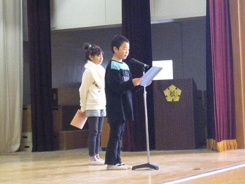 2年生が代表で、2学期に頑張ったこと、できるようになったことを発表しました。