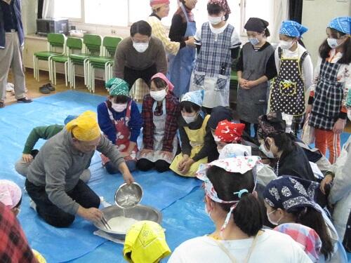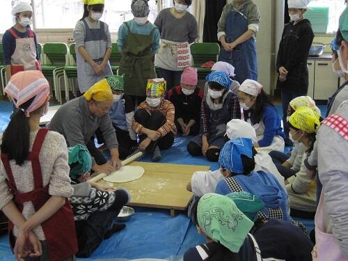 6年生は、手打ちうどんづくりを体験しました。