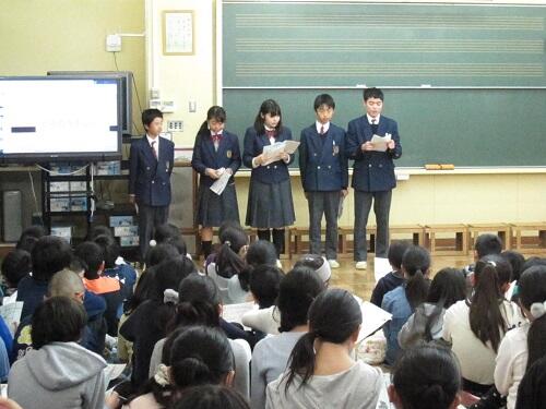 6年生は、立川七中を訪問し、生徒会の立川七中について説明を聞きました。