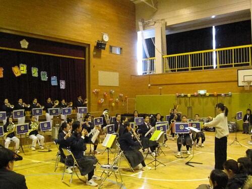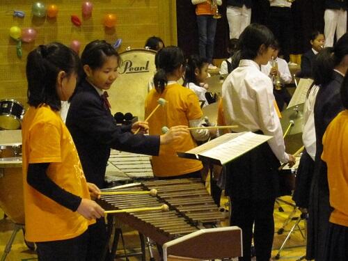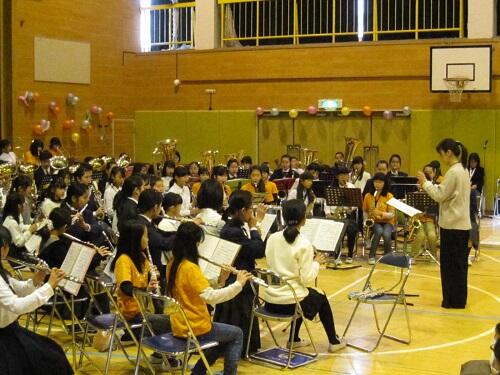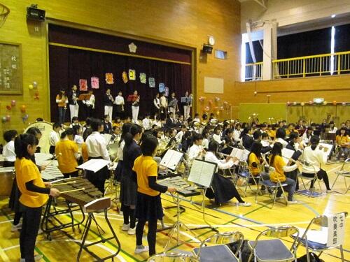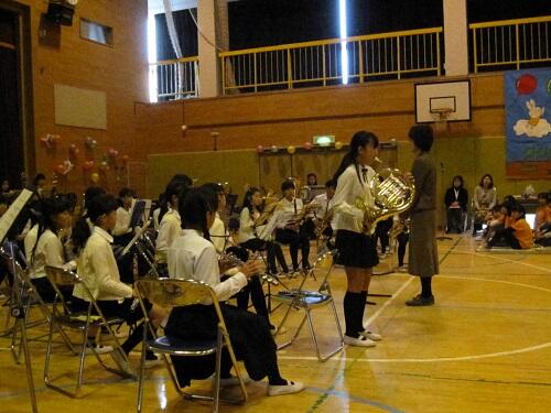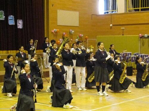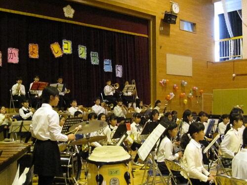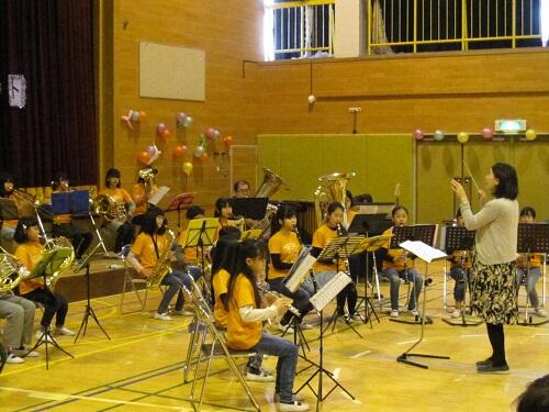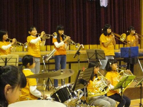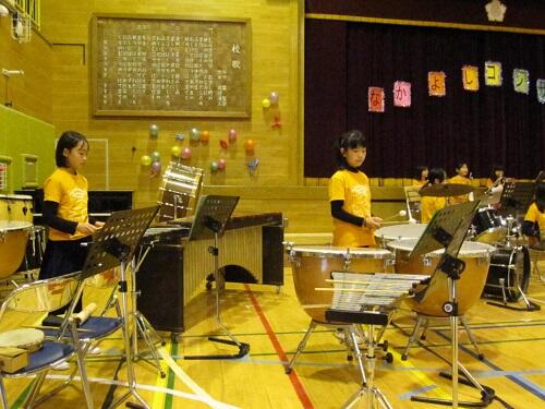 また、日頃よりボランティアで指導に来てくださっている保護者の大森さん、OGの卒業生、顧問の浅見先生、校長も子供たちと共に演奏に参加しました。