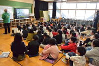 今日の「こどもひろば」は、お隣の松中保育園の園児さんがゲストです。1年1組は、朝からドキドキの様子でした。でも、始まるとはっきりとっした声で会を進めていました。松中保育園の年長さんは、音楽会に続いて2回目の来校なので、体育館の中は、経験済み。落ち着いてお話を聞いていました。