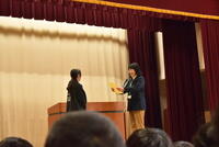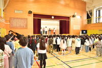 その後、まつのみ学級と2年生の代表が今学期頑張ったことと3学期に頑張りたいことをお話しました。運動、勉強、行事とたくさんのチャレンジについて話している姿は、誇らしい表情でした。