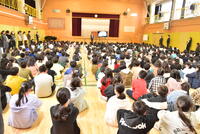 始業式、体育館は子供たちの「おはようございます!あけましておめでとうございます。」の声でいっぱいになりました。