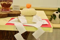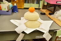 職員室と玄関に大きな「鏡餅」をそなえました。先日のおもちつきの際に地域の方々が作ってくださったものです。