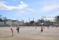 1年生は、図工で作った凧を校庭で上げていました。ちょうど良い風が吹いていて、凧の揚力の強さを手に感じて楽しそうした。