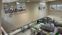 いつも美味しい給食を作ってくれる給食センターで実際に調理している様子を見学。大量調理の様子に驚いて見学窓から釘付けで見ていました。調理員さんがフロアーから手を振ってくださり、大喜びでした。
