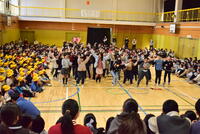 2校時 「長なわ大会」がありました。冬将軍が空から見守るとても寒い中でしたが、子ども達からは、今までの練習の成果を発揮しようとする意気込みが感じられました。6年生は、回すスピードも速く、リズムよく回数を重ねていました。1年生は、大波小波を跳ぶチームもあります。それぞれが力を合わせて一つの縄に向かえるような工夫も見られました。さぁ、結果発表が楽しみですね。