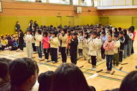 松中小学校も午後から、卒業式予行が行われました。5年生が参加し、6年生の姿から学び、最高学年になる自覚を高めていきます。