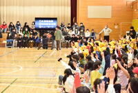 5年生は、寸劇の中で学校行事で実行委員長を務めた6年生にインタビューを交えて進め、最後は、ソーラン。どの学年も6年生への感謝の言葉が続きました。