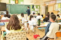 教室に移動して、クラスごとに体験授業を受けました。1組は「数学」。2組は「美術」。3組は「技術」と短い時間でしたが、中学校の授業の雰囲気を味わいました。
