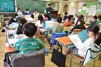 1年生の算数の授業です。「20より大きな数で計算の仕方を考えよう」に取り組んでいました。ブロックを使って考えを説明する子、言葉で計算の仕方を説明する子…わかりやすく説明することは、学びの定着につながります。「26+3」の計算の仕方をまず、先生に説明し、にっこり達成感を味わっている様子も見られました。