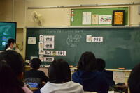 4年生は、算数の授業を進めていました。「余りのある割り算」で「余りを考えよう」というめあてでした。小数の割さんの筆算で余りの意味や大きさについて学んでいました。演習を繰り返し定着を目指している学級もありました。